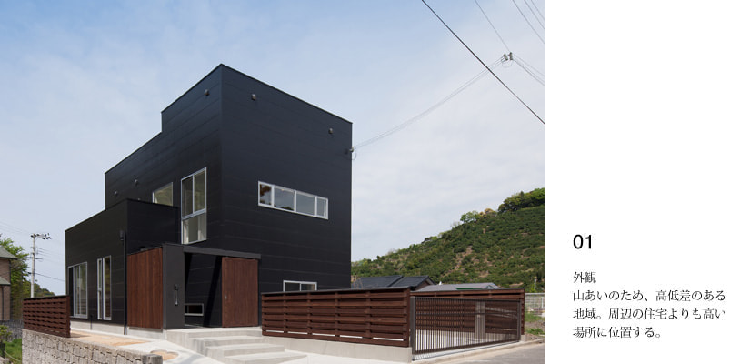 外観は濃いグレーのシンプルな矩形。