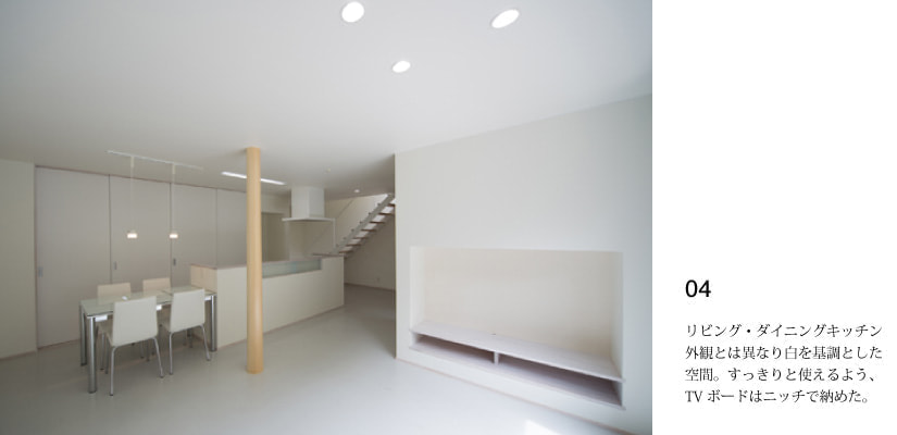 リビング、ダイニングキッチンは白を基調とした明るい空間である。