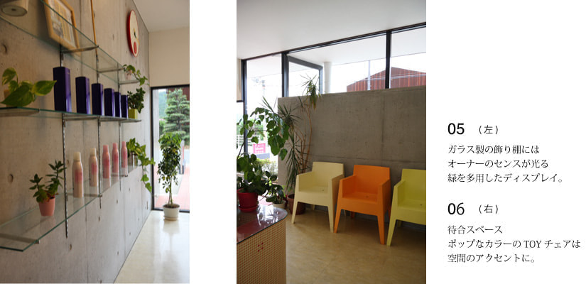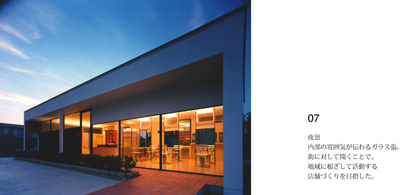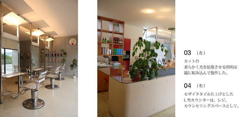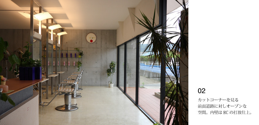 2001年に竣工したこの美容室には、地域に根ざして活動をするヘアメイクアーティストである女性オーナーの想いが込められている。