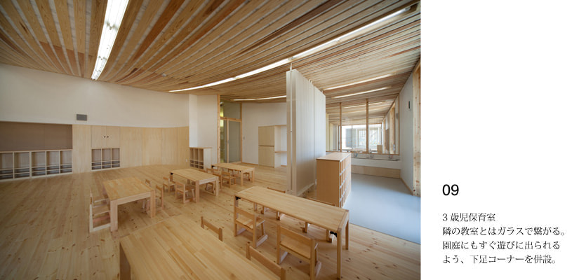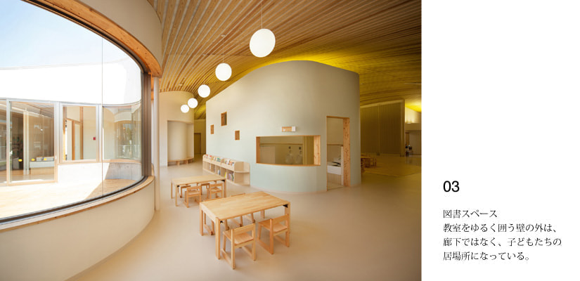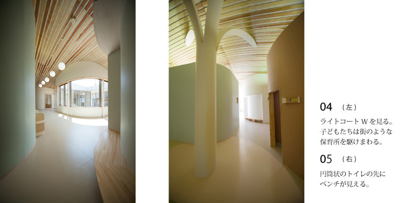 地域の中の保育所として子育てを新しいテーマで提案したいと考え生まれた建築である。